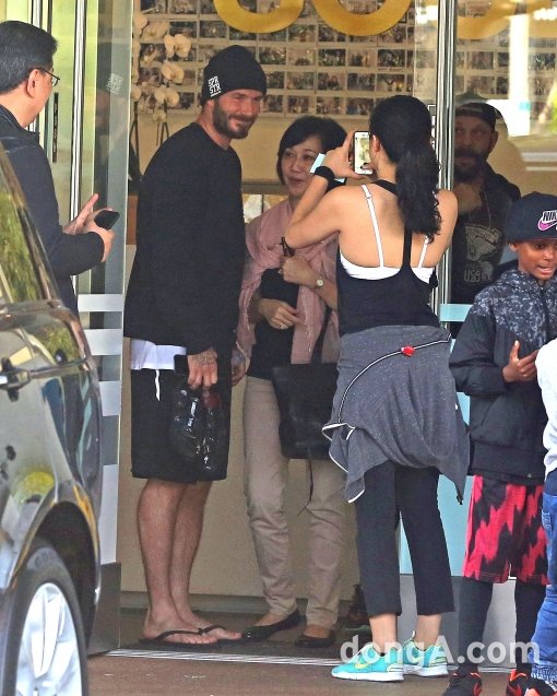 데이비드 베컴, 운동 마친 후 팬 사진 요청에 흔쾌히 응해