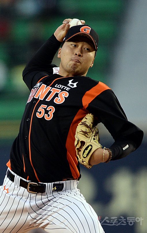 1일 오후 잠실야구장에서 열린 ‘2015 타이어뱅크 KBO리그’ LG트윈스와 롯데자이언츠의 경기에서 롯데자이언츠 선발 이상화가 역투를 펼치고 있다.