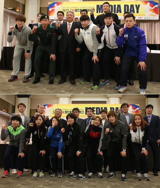 ‘2015 SK핸드볼 코리아리그’ 개막 미디어데이가 2일 남자부 5개 팀, 여자부 8개 팀 감독들이 참가한 가운데 서울 중구 프레스센터에서 열렸다. 올해 핸드볼 코리아리그는 4일 서울 송파구 SK핸드볼경기장에서 지난해 여자부 우승팀 인천시청과 준우승팀 서울시청, 남자부 우승팀 코로사와 준우승팀 두산의 맞대결로 막이 오른다.