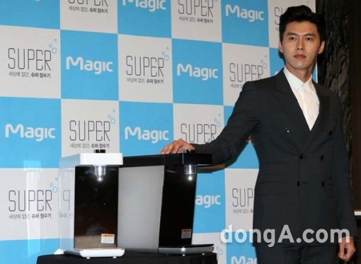 배우 현빈이 3일 오후 서울 동대문JW메리어트호텔에서 열린 주방생활 가전 전문기업 동양매직 슈퍼 정수기 출시 행사에 참석해 포토타임을 하고 있다.