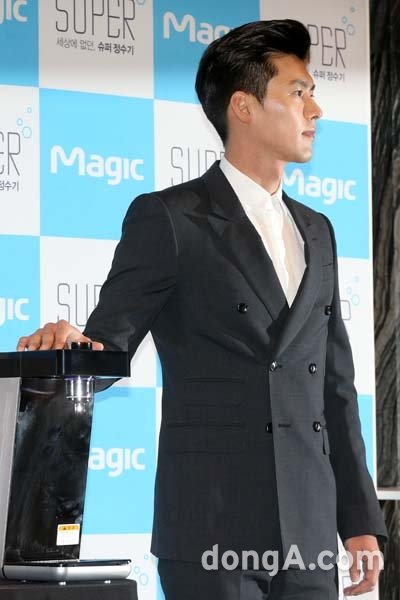 배우 현빈이 3일 오후 서울 동대문JW메리어트호텔에서 열린 주방생활 가전 전문기업 동양매직 슈퍼 정수기 출시 행사에 참석하고 있다.