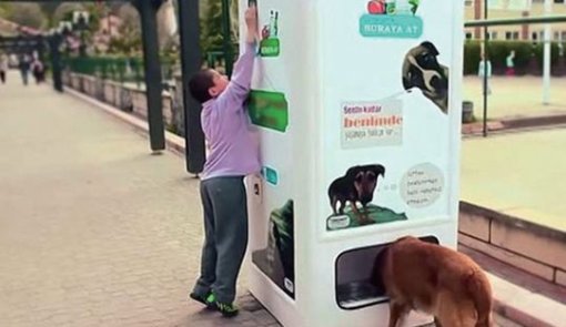터키의 착한 자판기는 빈 페트병과 캔을 재활용할 수 있을 뿐만 아니라 유기 동물들에게 무상으로 먹이까지 제공해 일석이조의 효과가 있다.