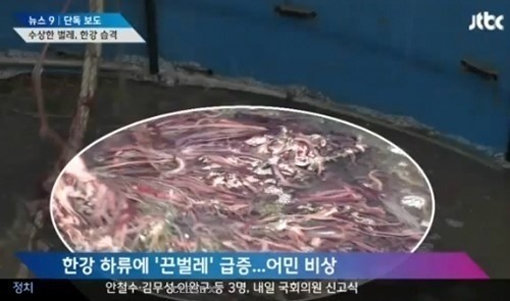 끈벌레 한강 하류대량 출몰…신경계 독소 뿜어내 “실뱀장어 90% 폐사돼”