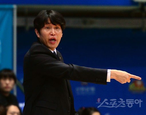 남자프로농구 모비스 유재학(52) 감독은 ‘2014∼2015 KCC 프로농구’ 동부와의 챔피언 결정전(7전4승제)을 치르던 도중 뜻밖의 선물을 받았다. 2일 원주종합체육관에서 벌어진 챔프전 3차전을 마치고 구단 버스에 오르자 선물 꾸러미가 있었다. 여자프로농구 우리은행 위성우(44·사진) 감독과 전주원(43) 코치가 원주까지 달려와 이날 경기를 지켜본 뒤 유 감독에게 전달한 것이었다. 여자프로농구 통합 챔피언에 오른 우리은행의 기념품과 넥타이가 담겨있었다.