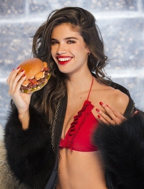 칼스 주니어 측이 최근 공개한 광고에는 빅토리아 시크릿 모델 출신의 사라 삼파이오가 모델로 나온다.