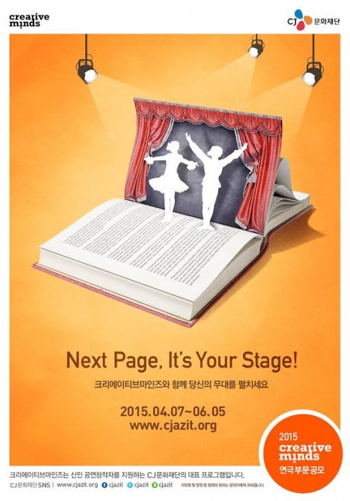 2015 크리에이티브마인즈 연극 부문 공모전은 대중과 소통할 수 있는 젊은 감각의 능력 있는 신인 공연 창작자를 발굴하기 위한 CJ문화재단의 문화공헌 사업이다. CJ문화재단은 이 사업을 통해 신인 공연 창작자에게 실질적인 무대 제작 경험과 기회를 제공하기 위해 작품개발비 지원은 물론 제작전반에 걸쳐 체계적이고 차별화된 창작 인프라를 지원한다.