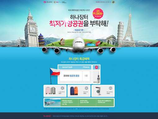 하나장터를 통해 항공권을 예약하면 추첨을 통해 프라하 왕복항공권과 기내용 캐리어, 메신저 백 등의 경품을 받을 수 있다.