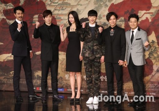 배우 차승원, 김재원, 이연희, 서강준, 한주완, 조성하(왼쪽부터)가 7일 오후 서울 마포구 상암동 MBC 사옥에서 열린 드라마 ‘화정' 제작발표회에 참석해 포토타임을 하고 있다.