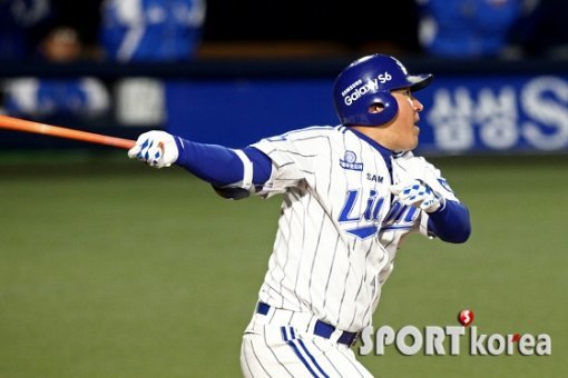 7일 오후 대구 시민야구장에서 열린 ‘2015 타이어뱅크 KBO 리그’ 삼성 라이온즈와 롯데 자이언츠의 경기 4회말 1사에서 삼성 최형우가 롯데 선발 린드블럼을 상대로 솔로홈런을 쏘아올리고 있다.