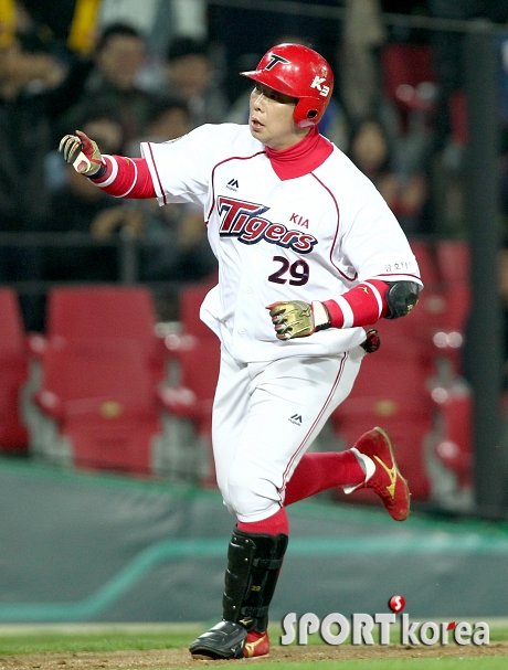 7일 오후 광주-기아 챔피언스 필드에서 열리는 ‘2015 타이어뱅크 KBO 리그 프로야구’ KIA 타이거즈 대 NC 다이노스 경기 4회말 1사에서 KIA 나지완이 NC 선발 해커를 상대로 동점 솔로홈런을 친 후 그라운드를 돌며 환호하고 있다.