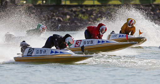 경정 다승 1위를 달리고 있는 심상철의 호쾌한 질주 모습. 휘감아 찌르기가 주특기로 선배 김효년과의 불꽃튀는 다승, 상금 경쟁이 경정팬들의 주목을 받고 있다. 사진제공|경륜경정사업본부