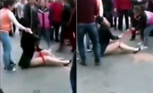 6일(현지시간) 영국 미러는 중국 산시성(山西省) 다퉁(大同)의 쇼핑몰 앞에서 한 여성이 속옷까지 벗겨진 채 다수의 여성들에게 무차별적으로 폭행을 당하는 모습을 공개했다.