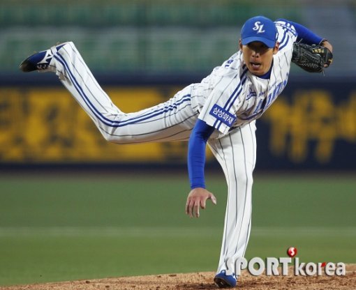 8일 오후 대구 시민야구장에서 열린 ‘2015 타이어뱅크 KBO 리그’ 삼성 라이온즈와 롯데 자이언츠의 경기 1회초에서 삼성 선발투수 윤성환이 역투하고 있다.