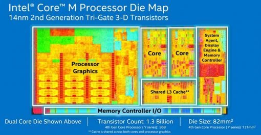 인텔은 코어 M 프로세서를 선보인 이후, 올해 1월에는 이보다 성능이 높은 5세대 코어 프로세서를 선보였다. 코어 M 프로세서와 동일한 14나노 공정을 기반으로 제작해 이전 세대(하스웰, 22나노) 프로세서보다 성능을 높임과 동시에 전력 소모량이나 발열을 줄인 것이 특징이다. 실제로 모든 사양이 동일하지만, 프로세서만 각각 하스웰과 브로드웰로 다른 모델 둘을 놓고 동영상을 재생해본 결과 브로드웰을 탑재한 제품의 배터리 지속시간이 1시간 30분에서 2시간 정도 오래갔다(참고기사: http://it.donga.com/20524/)