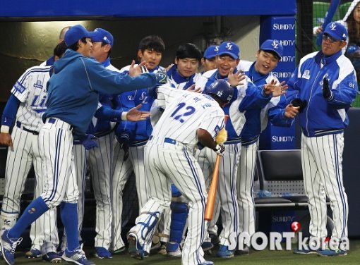 ‘KBO 프로야구 중계’ 나바로 ‘홈런 축하 받는 중’