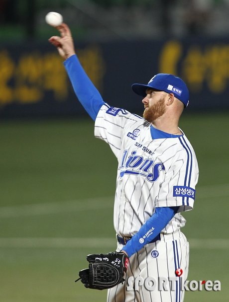 9일 오후 대구 시민야구장에서 열린 ‘2015 타이어뱅크 KBO 리그’ 삼성 라이온즈와 롯데 자이언츠의 경기 3회초 2사 2루에서 삼성 선발투수 클로이드가 롯데 손아섭에게 투런 홈런을 허용한 후 볼을 바꾸고 있다.