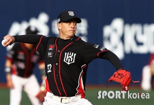 11일 오후 서울 목동야구장에서 열린 ‘2015 타이어뱅크 KBO 리그’ 넥센 히어로즈와 kt 위즈의 경기 1회말에서 kt 선발투수 옥스프링이 역투하고 있다.