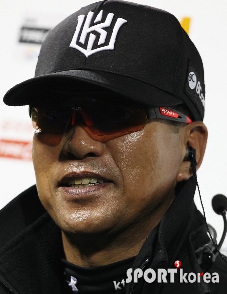 경기종료 후 시즌 11연패를 끊고 창단 첫 승을 거둔 kt 조범현 감독이 방송 인터뷰 중 미소를 짓고 있다.