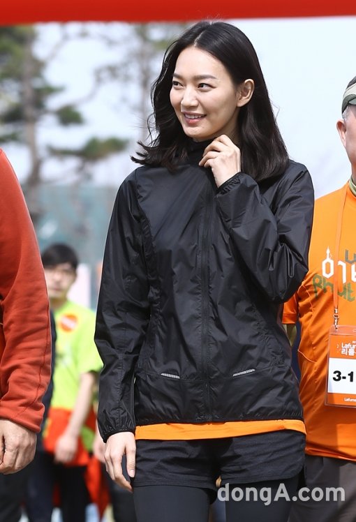 배우 신민아가 12일 오전 서울 남산 백범광장에서 열린 라푸마 트레일워킹화 ‘FX 제로-지(FX ZERO-G)’ 출시 기념 ‘2015 라푸마 리듬워킹’ 행사에 참석해 걷고 있다.