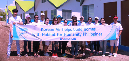 대한항공 집짓기 봉사활동은 2013년 10월 필리핀 마닐라 케손 지역을 시작으로 3년째 지속하고 있다. 국내에서는 2001년부터 ‘한국 해비타트’에 건축비, 항공권 등의 후원을 하고 있으며, 2004년부터는 임직원들과 가족들이 함께 해비타트 집짓기 현장에 참여해 올해까지 13채의 집을 지었다.