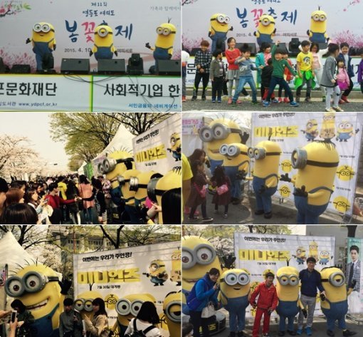 전세계 25개국 박스오피스 1위 그리고 ‘토이스토리3’ ‘겨울 왕국’에 이어 전 세계 애니메이션 최고 흥행 3위의 대기록을 세운 ‘슈퍼배드’ 시리즈의 스핀오프 ‘미니언즈’. 그 주인공들이 10일부터 시작된 ‘영등포 여의도 봄꽃축제’에 출격해 관객들을 위한 깜짝 이벤트를 펼쳤다.