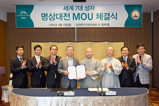 강원랜드가 전세계에서 2만여 명이 참석하는 ‘세계7대 성자 명상힐링캠프’를 개최한다. 강원랜드는 13일 컨벤션 호텔에서 함승희 대표와 세계명상대전 준비위원회 위원장 각산스님이 참석한 가운데 행사의 성공적인 진행을 위한 MOU를 맺었다.