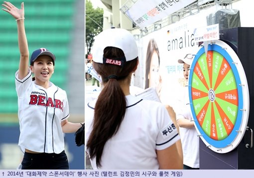 대화제약은 스폰서데이를 기념해 국내 최초 붙이는 록소프로펜 파스인 ‘록소나’를 경기 전 두산베어스 선수단에 전달한다. 대화제약의 필러 제품 브랜드인 ‘아말리안’의 광고 모델인 탤런트 김정민 씨는 승리 기원 시구를 위해 마운드에 오른다.