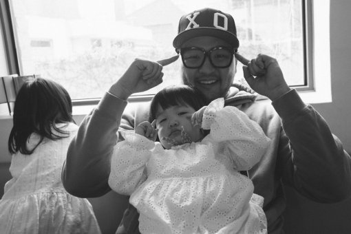 흑백으로 보정을 주어 더 느낌 있게 연출된 이 사진은 두 딸들과 함께 행복한 시간을 보내고 있는 김태우의 모습이 담겨있어 눈길을 끈다.