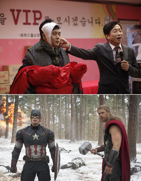 영화 ‘약장수’-‘어벤져스:에이지 오브 울트론’(아래). 사진제공|26컴퍼니·월트디즈니 컴퍼니 코리아