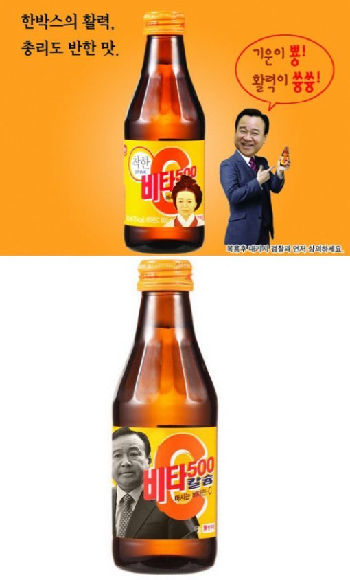 또 다른 네티즌은 비타500 병에 이완구 총리의 사진을 감쪽같이 합성해 마치 이 총리가 비타500의 광고 모델인 것처럼 표현했다.