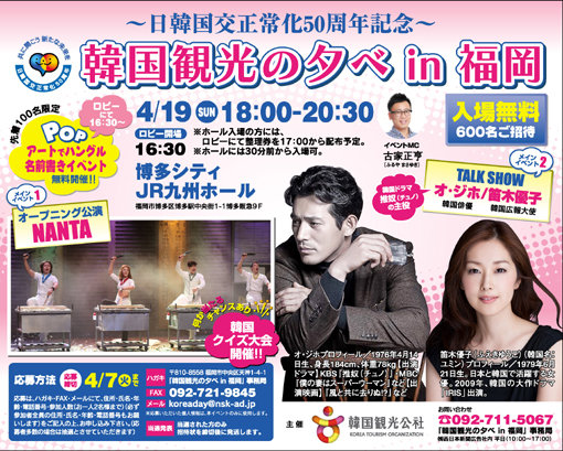 이밖에 행사에서는 드라마 ‘환상의 커플’ 등으로 일본인에게 인기 있는 오지호와 ‘아이리스’ 등에 출연한 한국관광 명예홍보대사 유민이 참가하는 토크쇼도 열린다.