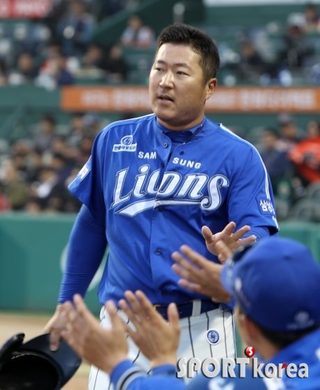 15일 오후 대전 한화생명이글스파크에서 열린 ‘2015 타이어뱅크 KBO 리그 프로야구’ 한화 이글스와 삼성 라이온즈의 경기 삼성 2회초 1사 1,3루에서 6번 이승엽의 적시타 때 3루주자 최형우가 득점을 올리고 덕아웃에서 동료선수들과 하이파이브를 나누고 있다.
