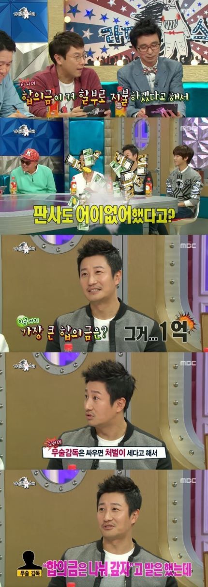 이어 "무술감독은 싸웠을 때 처벌이 더 강했고, 재활 중인 야구선수는 그곳에 있으면 안됐다. 그리고 개그맨은 정말 착한 친구였다"며 "그래서 내가 싸우게 돼 경찰서, 법원까지 간 것이다. 무술감독님이 합의금을 나눠서 갚자고 했지만 그 뒤로 연락이 없더라"고 씁쓸해 했다.