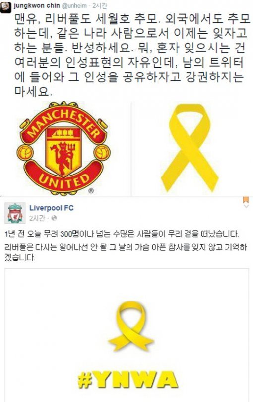 맨유 세월호 추모 리버풀 진중권 맨유 세월호 추모 리버풀 진중권