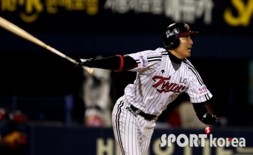 16일 오후 잠실야구장에서 열린 ‘2015 타이어뱅크 KBO 리그 프로야구’ LG 트윈스 대 KIA 타이거즈 경기 2회말 1사 1,2루에서 LG 이진영이 1타점 동점 적시타를 치고 있다.