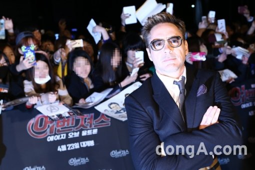 로버트 다우니 주니어가 17일 오후 서울시 강남구 SETEC에서 열린 영화 ‘어벤져스: 에이지 오브 울트론(이하 ‘어벤져스2’)’ 레드카펫 행사에서 한국팬들을 만나고 있다.