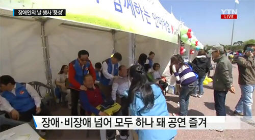 장애, 비장애를 뛰어넘어 모두가 하나 돼 공연을 즐기는가 하면 장애인 보조 기기 전시 등 다양한 내용으로 마련된 부스를 찾아 직접 체험을 해보는 행사도 진행됐다.