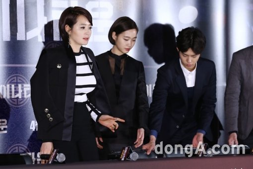 배우 김혜수(왼쪽부터), 김고은, 박보검이 20일 오후 서울시 성동구 왕십리CGV에서 열린 영화 ‘차이나타운’ 언론시사회에 참석하고 있다.