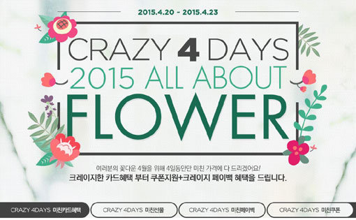 AK플라자에서 운영하는 종합온라인쇼핑몰 AK몰(www.akmall.com)이 4월20일부터 23일까지 4일간 ‘크레이지 4데이즈’를 열고 봄 꽃놀이 테마의 다양한 상품 기획전 및 이벤트를 진행한다.