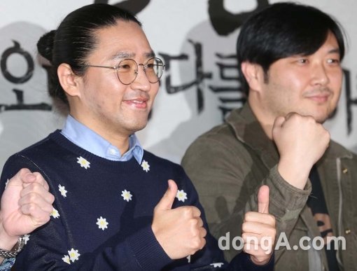 감독 김한민(왼쪽)과 배우 장준녕이 20일 오후 서울 강남구 코엑스 한 멀티플렉스에서 열린 영화 '명량: 회오리 바다를 향하여’ VIP시사회에 참석해 포토타임을 하고 있다.
