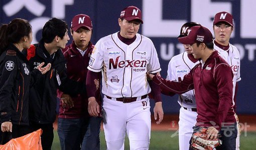 유한준은 21일 목동구장에서 열린 두산 베어스와의 ‘2015 타이어뱅크 KBO리그’ 홈경기에서 2회까지 연타석 홈런으로 7타점을 쓸어 담으며 맹타를 휘둘렀지만 3회초 수비 도중 두산 김현수의 타구를 잡다가 왼쪽 무릎을 다쳤다.