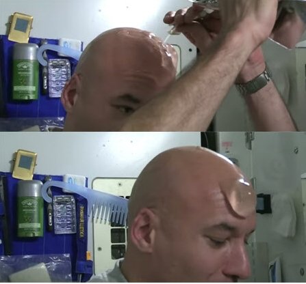 뿐만 아니라 우주비행사들은 샤워를 할 수 없어 미리 혼합된 세제를 수건에 묻혀 몸을 닦는 형태로 몸을 씻는다. 빗, 칫솔 같은 생필품이 우주선 내부에 있긴 하나, 무중력 상태에서는 잘 쓰이질 못한다.