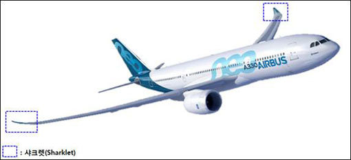 A330 NEO ‘샤크렛’은 폭 2m, 길이 4m의 날개 구조물로서, 첨단 복합소재로 제작되어 항공기 주 날개 양쪽 끝에장착된다. A330 NEO 샤크렛은 날개끝 부위의 공기 저항을 감소시켜 기존 항공기 대비 연료 효율성을 4% 높이고, 항공기 성능 향상 및이산화탄소 배출을 감소시키는 역할을 한다.