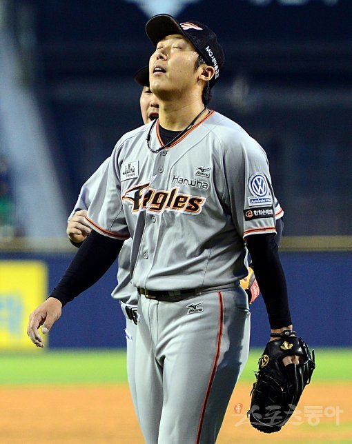 23일 오후 잠실야구장에서 열린 ‘2015 타이어뱅크 KBO리그’ LG 트윈스와 한화 이글스의 경기에서 2회말 만루 위기를 넘긴 한화 선발 배영수가 덕아웃으로 향하고 있다.