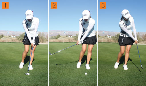 1. 체중을 왼발에 9, 오른발에 1, 그립은 손이 공보다 앞에 있는 핸드퍼스트를 유지한다. 2. 백스윙 때 손목의 사용을 줄이고 어깨만 회전한다. 3. 공이 굴러가는 방향은 클럽 페이스가 가리키는 방향과 같다. 임팩트 때 클럽의 헤드 페이스가 타깃과 같은 방향을 향하도록 밀어준다.