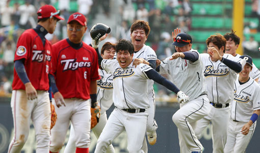 사실 그랬다. 그동안 유민상은 유승안 경찰야구단 감독의 차남이자, LG 투수 유원상의 동생으로만 사람들의 입에 오르내렸다. 스스로도 “내게는 숙명 같은 일”이라고 했다. 그러나 바로 이날 유민상은 처음으로 누구의 아들도, 누구의 동생도 아닌, 그냥 자신의 이름 석 자로 우뚝 섰다. 3-3으로 팽팽히 맞선 연장 12회말 1사 1·3루서 두산의 마지막 대타로 나섰고, 오재원의 도루로 계속된 1사 2·3루 찬스서 KIA 투수 윤석민으로부터 중견수 희생플라이를 뽑아 끝내기 타점을 올렸다. 2012년 프로 입단 이후 1군 첫 타점이 가장 극적인 순간에 터졌다.