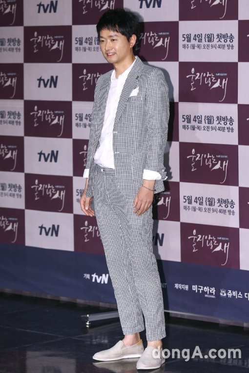 배우 김유석이 27일 오후 서울시 강남구 청담씨네시티에서 열린 케이블채널 tvN 드라마 ‘울지 않는 새’ 제작발표회에서 포토타임을 하고 있다.