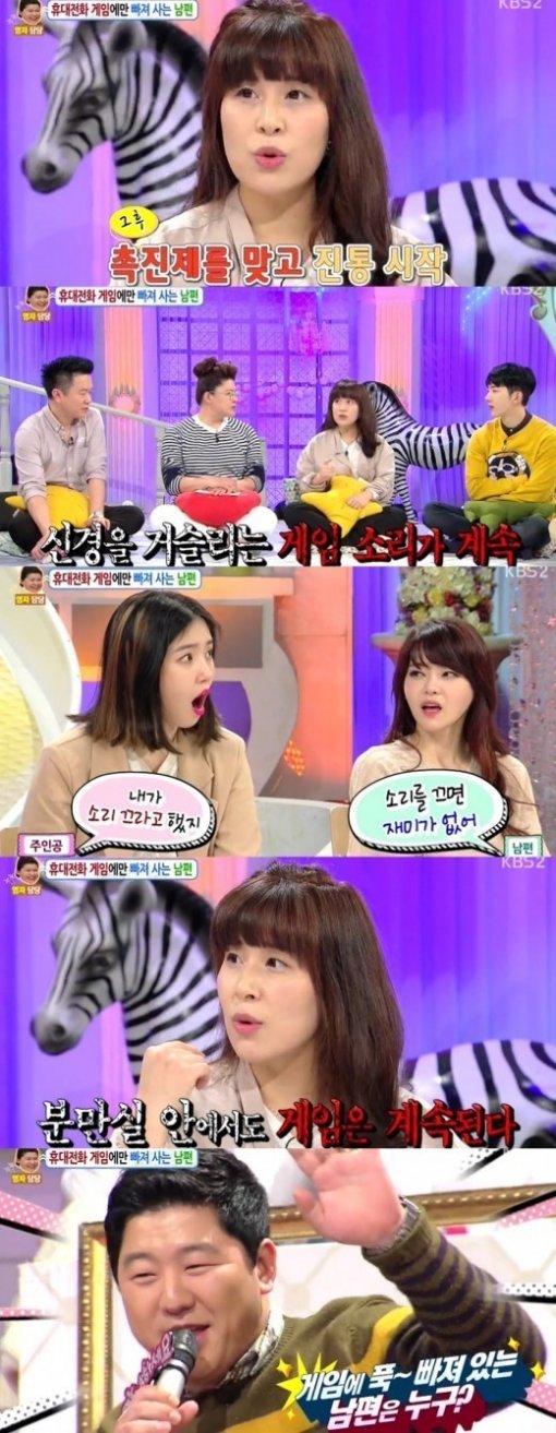 이날 방송에는 컴퓨터 게임, 모바일 게임 등에 완전히 미쳐버린 남편이 고민인 아내의 사연이 등장했다.