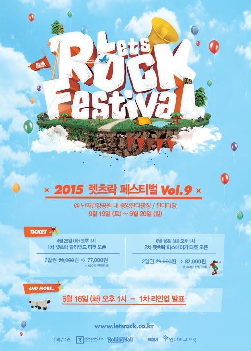 한편 올해 9회째를 맞는 2015 렛츠락페스티벌은 9월 19일부터 20일까지 한강 난지공원 내 중앙잔디광장과 잔디마당에서 펼쳐진다.