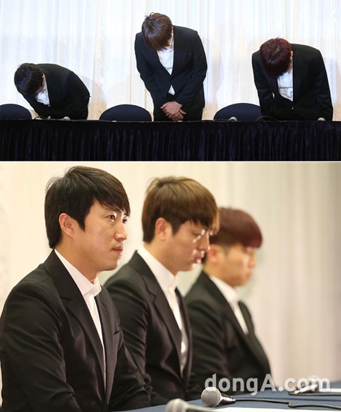 지난 28일 오후 7시 ‘옹달샘’ 멤버들은 서울 마포구 상암동 스탠포드호텔 서울에서 기자회견을 갖고 잇단 발언 논란에 머리 숙여 사과했다.